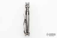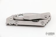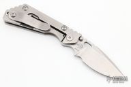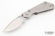 This PT by Mick Strider features a stonewashed blade with notched thumbrest and thumbhole. The handle has a stonewash titanium frame with matching tip up clip. Excellent Condition.