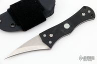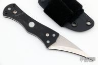 This Cock Spur by John Gray features a hawkbill blade with nice buff line on the blade edge, .165" blade stock and 1.171" blade depth, full tang construction with black G-10 scales that have moonglow inlays. Comes with a kydex sheath with Velcro loop. Excellent Condition.