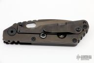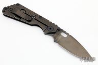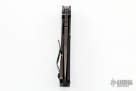 This Mick Strider SNG framelock folder features a black chromium nitrate blade with thumbhole and notched thumbrest. The handle has a black G-10 and black chromium nitrate coated titanium frame with titanium clip, tip up carry. Jimping on blade spine. Nice lockup, and blade seating. Excellent condition.