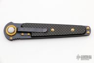 This Paul Defender by Lone Wolf Knives features a black spear point blade. The handle has carbon fiber scales with stainless steel liners and tip down clip. Comes with a zippered case. Excellent condition.
