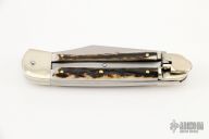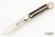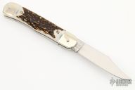 This leverlock auto by Hubertus features a mirror polished clip point blade, nickel silver double bolsters, stag scales, and brass liners and pins. Opens with a nice snap. Very fast opening. Comes with original box. New condition.
