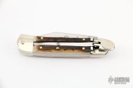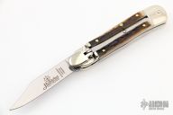This leverlock auto by Hubertus features a mirror polished clip point blade, nickel silver double bolsters, stag scales, and brass liners and pins. Opens with a nice snap. Very fast opening. Comes with original box. New condition.
