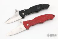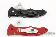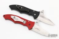 "Martial Arts Hall of Famer, and Grand Master-Bram Frank designed the Gunting for specialized MBC applications. The knife is designed to be a ready cutting tool but also as a non-cutting (non-lethal and less-than-lethal) impact tool. Bram travels the world teaching Gunting use through his company, Common Sense Self Defense" This Gunting set includes the Gunting knife, which features a plain edged blade and black G10 handle, and the Gunting trainer which has red G10 handles. Comes with original box and papers for both items. Has some scuffs and scratches, great condition otherwise.
