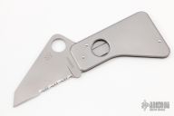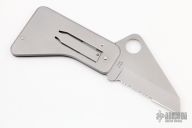 This Spydercard by Spyderco features a bead blasted wharncliffe blade with thumbhole and partially serrated edge. The handle has a bead blasted stainless steel frame. Nice lockup and blade seating. Comes with original box. Has a couple light scuffs. Excellent Condition.