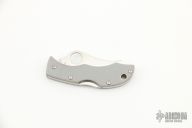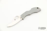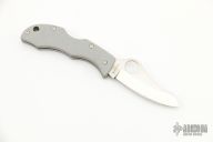This Jester by Spyderco features a satin finished blade with thumbhole and notched thumbrest. The handle has grey G-10 scales, stainless steel liners and backspacer, lanyard hole. Comes with original box and papers. New condition.