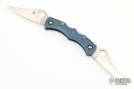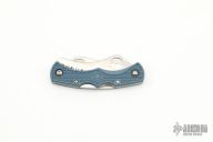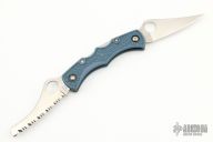 This Dyad Jr. by Spyderco features two satin finished blades, one is fully serrated and both have thumbholes. The handle has grey FRN scales, stainless steel liner and backspacers. Comes with box and papers. New condition.