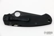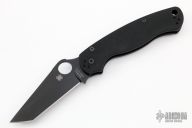 This G81GM4BKP2 Paramilitary 2 by Spyderco features a black tanto blade with thumb hole, notched thumb ramp and choil. The handle is comprised of textured black G10 scales over a stainless steel subframe and lockbar. 4 way adjustable pocket clip and lanyard tube in pommel. Includes original box and paperwork. New condition.