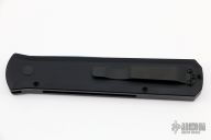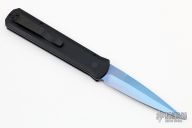 This Godfather by Pro-Tech features a Sapphire blue blade. The handle has a black aluminum frame with black hardware and black stainless steel tip up clip, abalone inlaid push button. Comes with original box and papers. Excellent condition.