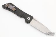 This Spider Monkey Linerlock folder by Southern Grind features a tumble finished drop point blade with dual thumb studs and a notched thumbrest. Handle has fluted carbon fiber scales over titanium liners and barrel spacers, tumbled stainless steel tip up clip, and lanyard hole. Excellent condition.