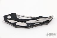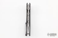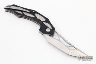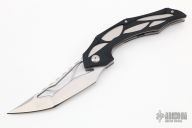 "Jason Brous began his efforts in knifemaking with the benefit of nearly 10 years of experience in CNC machining. His father owns a shop that specializes in the custom machining of high-precision components, mainly for the medical industry. Jason spent a lot of time in his father’s shop while growing up, and by his mid teens was actively helping out with production. His skills and knowledge steadily increased and by the time he was 20 he was a seasoned and very competent machinist. Jason's interest in knives actually began with art - specifically a style called “Bio-mechanical” - as practiced by one of his favorite artists, a Brazilian painter and tattooist named Lango. Biomechanical art (also called Biomech) is a surrealistic style of art that combines elements of machines and robotics with organic animal features. Intrigued by this style of art and its similarity to many fantasy knives, Jason figured that knifemaking would be a natural extension of his metalworking skills and an appropriate medium for his artistic ideas. Although he had no specific training in knifemaking, in 2010 he designed and made his first knife - a fantasy design with a Biomech flavor. Through persistent trial and error, Jason changed his style of knife design to focus on functional simplicity, while still maintaining a strong artistic signature. His early successes came in the form of a series of stout neck knives with dual finger-hole grips. Fans of these “Silent Soldier” neck knives began asking for other expressions of the design. Since then, Jason has created numerous variations including a clip point version, a tanto version and the very popular folder version called the Silent Soldier Flipper."