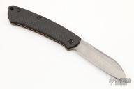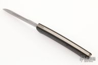 This Benchmade Proper slip joint folder is a modern take on a classic gentleman's knife design. This model features Carbon fiber covers paired with a stonewashed sheepsfoot blade made from premium S90V stainless steel. Skeletonized stainless steel liners offer reduced weight for comfortable everyday carry in a pocket or pack. A lanyard hole in the handle accommodates key ring or lanyard attachment. Excellent condition.