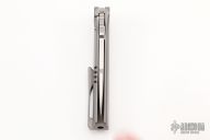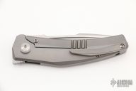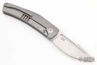 The Krypton #2 is the smaller version of the Krypton #1. The Krypton was designed by Tashi Bharucha and manufactured by Reate Knives.This knife features a carbon fiber inlay, a titanium frame and a matching tip up titanium pocket clip. The blade is made from American CPM-145 stainless steel, which is widely considered one of the best EDC knife steels, thanks to its edge retention and ease of sharpening. The knife opens with the use of Lee Williams' Kick Stop flipper, which is there when the knife is closed, but once it’s opened, disappears neatly into the handle to maintain those sweet, sweet lines. Comes with a zippered case. Excellent condition.