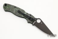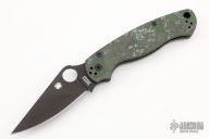 This Paramilitary 2 Linerlock Folder from Spyderco has a black finished clip point blade with thumb hole and notched thumb rest. Handle has black/green Fat Carbon scales with stainless steel liners and stainless steel 4-way reversible clip. Comes with original box and papers. Excellent condition.
