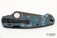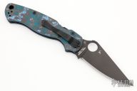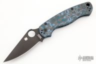 This Paramilitary 2 Linerlock Folder from Spyderco has a black finished clip point blade with thumb hole and notched thumb rest. Handle has black/blue Fat Carbon scales with stainless steel liners and stainless steel 4-way reversible clip. Comes with original box and papers. Excellent condition.