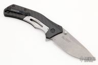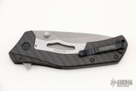 This Knockout Flipper has a stonewashed drop point blade with swedge, dual thumb studs, and flipper. Handle has a carbon fiber frame with stainless lockbar, black stainless steel 4-way reversible clip, and lanyard hole. Speedsafe system offers excellent deployment of blade. Nice budget EDC piece. Comes with original box and papers. Excellent condition.