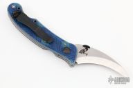This Elvia by Emerson Knives features a stonewash finished hawkbill blade with wave features and thumbdisc. The handle has "Peacock" G-10 scales, titanium liners, black stainless steel tip up clip. Comes with original box and papers. Excellent Condition.  #2291