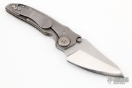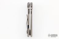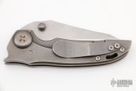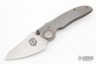 This Thuck by John Gray Knives features a two tone, chisel ground blade with swedge and dual thumb studs. The handle is comprised of a "barked" titanium frame with batching tip up clip over titanium stand offs. Lanyard hole in pommel. Has a couple of light scuffs, otherwise excellent condition.