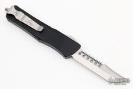 This Troodon by Microtech Knives features a stonewashed Hellhound blade with satin flats and false top edge. The handle has a black aluminum frame with tip down blasted stainless steel clip and hardware. Comes with original box and papers. 09/2022 and #094. Excellent condition.