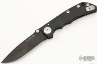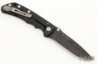 This framelock folder by Spartan Blades features a black PVD finished drop point S45VN blade with dual thumbstuds and a notched thumbrest. The handle has a black PVD finished titanium frame with tip up titanium clip. Has nice detent, lockup, and blade seating. Comes with original box and papers. Excellent condition.