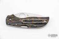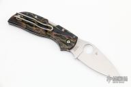 A Chaparral is a shrub native to the Western United States with the unique ability to perennially survive, revive and regenerate after being destroyed by drought. It’s also what Spyderco calls a new and continuing series of gentlemen’s folders. Mid-sized Chaparral folders will have identical blade and handle profiles but showcase variant handle materials. Handle options will be chosen for their elegant appearance and functional utility with a focus directed at making the Chaparral series unique as well as a serious contender in the gent’s knife genre. The Chaparral 2 has a unique textured titanium handle with a mid-positioned back lock and screw-together construction. Attached to the ultra-slim handle, a left-right, tip-up pocket clip arranges the knife deeply inside a pocket. CTS-XHP stainless steel blade. The blade is flat ground and plain edged for the best available cutting performance with non-skid jimping located at both the spine and choil. Excellent condition. Comes with original box. DISCONTINUED.