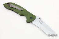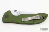 This production Super Commander has a silver coated blade and green G-10 scales. Has TAD stamp on back of blade, S/N 041. Excellent condition.