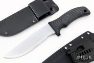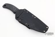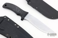This Arizona Hunter by MadDog knives features .186" stock. 1.335" blade depth, hidden tang construction. Selectively tempered, the knife has a Rockwell C-scale hardness of 62 at the edge (as hard as a file), and HRC 50-54 throughout the spine. Hard chrome blade finish. The handle is designed to be ergonomic and has the ability to withstand tremendous punishment with little or no damage. It is hard and tough enough to be used as an impact tool. Blade Steel: Starrett 496-01 High Carbon Tool Steel. Has some sheath scratches on the blade, otherwise excellent condition. Comes with original kydex sheath and a custom kydex sheath with TekLok.