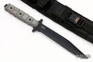 "The USMC Combat knife, a TOPS Knives production, was designed by Laci Szabo, a well-known knife aficionado and designer. His prior service in the Marine Corps was instrumental in his creation of the USMC Combat Knife. Keeping his design within the basics of use, form and fit he used standards which makes this knife a positive step forward in hard core use, not only for the military, but a great general use outdoor tool. The full-tang construction and a well thought out handle shape, this knife has been taken into the field and been used and abused. It received "A" grade results all around. All the guys that have had this knife in their hands have been very impressed with the great feel of power, outstanding wet gripping and solid weight with positive performance."