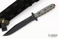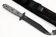 "The USMC Combat knife, a TOPS Knives production, was designed by Laci Szabo, a well-known knife aficionado and designer. His prior service in the Marine Corps was instrumental in his creation of the USMC Combat Knife. Keeping his design within the basics of use, form and fit he used standards which makes this knife a positive step forward in hard core use, not only for the military, but a great general use outdoor tool. The full-tang construction and a well thought out handle shape, this knife has been taken into the field and been used and abused. It received "A" grade results all around. All the guys that have had this knife in their hands have been very impressed with the great feel of power, outstanding wet gripping and solid weight with positive performance."