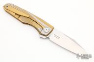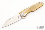 This Cicada by Maxace features a satin finished blade with a notched flipper. The handle features an anodized titanium frame with a titanium tip up pocket clip and backspacer.  Light scratches are visible on the frame otherwise the knife is in Excellent Condition.