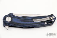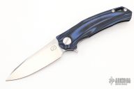 This knife features a satin finished drop point blade with a notched flipper tab. The handle features a G-10 frame and backspacer with a tumbled steel tip up pocket clip. Excellent Condition.