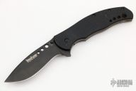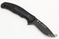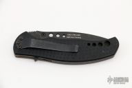 This Boa assisted opening linerlock is a Ken Onion design produced by Kershaw. It and has a safety. Black blade with single thumbstud and a flipper. The handle has black aluminum dimpled scales, stainless steel liners, black backspacer, and a tip down black stainless steel clip. Has some scuffs, otherwise good condition.