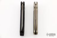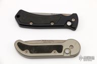 This Side-opening coil spring automatics by Paragon features a bead blasted blades with partially serrated edges. Aluminum frame with rubber inlays. Has some scuffs, otherwise good condition.