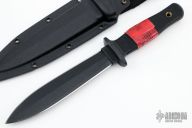 This Peacekeeper 1 from Cold Steel features a double edged black blade with .206" blade stock and 1.325" blade depth. The handle a Kraton grip over hidden tang construction. Lanyard hole in pommel. Comes with a kydex sheath and original box. Excellent condition.