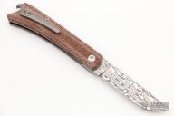 Beer Buster Jr. Front Flipper - Brown Micarta/Damasteel