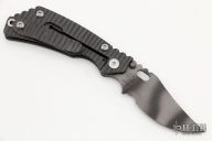 In 1988, he began making specialized knives for use by the military. This turned out to be fortunate turn of events, both for Mick and for the knife using world at large. Mick’s approach was to not get burdened by the weight of past designs. He started with a tabula rasa, a clean slate, informed only by his own experiences and knowledge of what a soldier needed in a knife. The knives he made didn’t look like the hunter-inspired knives seen in most PXs; instead they were almost brutish in their functionality: beefy, solid, and with unbreakable ¼” stock full tangs. These knives were the first indication of his innovative approach: in addition to their utilitarian design, the knives carried a subdued finish and subdued sheaths. No one carrying a Strider knife was going to be spotted because of sunlight glinting off of polished steel or a glossy leather sheath. Soldiers, policemen, and other men going into harm’s way couldn’t buy them fast enough. Mick sampled some good ideas, but made them great. For instance, he was not the first to wrap a knife handle with paracord, but he was the first to do it in a way that was tough enough for sustained infantry use. His knife line grew over the following years to include different varieties of fixed blades, all distinctive and many with specialized uses. But constant in all of them was a disregard for convention, and a desire to try new ideas. An example of this was the Ajax – it featured a very wide blade surface clearly designed to inflict damage. It drew on the weapons carried by Roman legionnaires, yet was modern and usable in the 21stCentury battlefield. Mick also worked on his technical skills, always striving to become better at the physical craft. At the 2002 Blade Show, a group of the best tactical knifemakers in the country decided to compete with each other to produce the most innovative and interesting fixed “battle blade” at the show. Mick’s entry, an incredible integral knife made out of ½” titanium stock with a zippered composite blade, gorgeous handles, and integral guard was the unanimous winner, and effectively retired the competition.