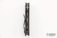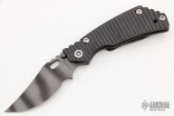 This PT Persian by Mick Strider features a tiger striped blade with notched thumbrest and thumbhole. The handle has a flame finished titanium frame with matching tip up clip. New from maker at the 2022 CCKS.