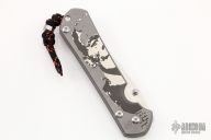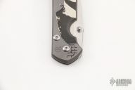 The idea behind the Sebenza has never wavered: to craft the best pocket knife in the world. Premium materials, paired with pristine finishes, and a bank-vault lock-up— all within an incredibly light, precision-made tool. That commitment continues with the new Sebenza 31 with a Ceramic Ball Interface. Like the very first Sebenza, it delivers the same warm “click” and heirloom quality produced from aerospace tolerances. The Sebenza 31 brings finer details to an already fine knife — and another steady, reliable step forward. This one has a stonewashed S45VN blade, and HALLOWEEN themed titanium frame.  Includes a slip sheath, original box and papers dated October 12, 2022. New from maker at the 2022 CCKS. We were told that they were no longer making the Halloween series after this year.