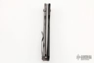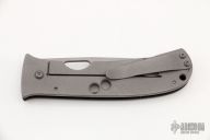 This Covert 6K folder by Tom Mayo features a Stellite 6K blade with a fine bead blast finish and thumbhole opening. The handle has a carbon fiber and bead blast titanium frame with titanium tip up clip, all titanium hardware. This knife is completely non-magnetic. Smooth action. Nice detent, blade seating and lockup. Comes with velcro case. Has a couple light scuffs, otherwise excellent condition.