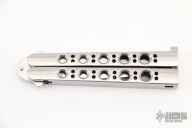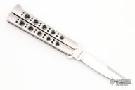 This vintage Model 35 Balisong from benchmade features a polished drop point blade with swedge. The handle is comprised of integral steel construction. T latch on pommel. Includes original nylon sheath. Minor scratches on blade, but otherwise great condition.