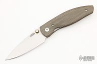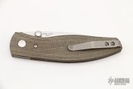 This Atom Linerlock by Three Rivers features a stonewashed blade with dual thumbstuds. The handle has green canvas micarta scales, titanium liners and tip up reversible clip. Nice detent, lockup and blade seating. Comes with original box. Excellent condition.