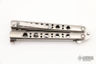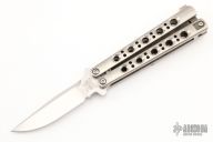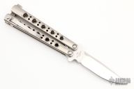 This model 31 balisong by Benchmade features a stonewashed clip point blade with a false top edge. Has titanium handles with a stainless steel clip, tip up carry. Comes with original box and papers. Light scratches are visible otherwise the knife is in Excellent condition.