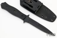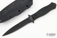 This Silent OPS Bayonet featurse a black blade with fullers and false top edge, .174" blade stock and .893" blade depth, full tang construction with black G-10 scales. Comes with a kydex sheath with TekLok. Has a couple light scuffs, otherwise excellent condition.