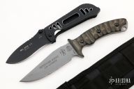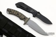 A great knife to have when you're in a survival situation. Our Tactical Gray powder coated blade with notched thumbrest, .189" blade stock and 1.264" blade depth, full tang construction. The handle has Rocky Mountain Tread on Black Linen Micarta handle scales and white liners. Comes with a sturdy kydex/nylon sheath complete the package. A great knife for camp and general outdoors tasks. Has a couple light scuffs, otherwise excellent condition.
