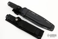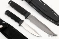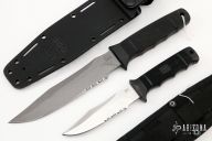 The Tigershark has a grey coated partially serrated blade with black zytel grip. Comes with a kydex sheath. Has some scuffs/scratches, otherwise good condition. The Seal Pup a polished partially serrated blade with black zytel handle. Comes with nylon sheath. Has some scuffs and scratches, otherwise good condition.