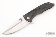 This Splitter from John Gray Knives features a satin finished multi-ground blade with flipper. The handle has a carbon fiber front scale with fullers, an orange peel titanium lockside with anodize and textured backspacer and tip up clip. Nice detent, lockup and blade seating. Comes with a zippered case. Excellent condition.