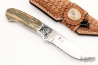 D'Alton Holder was born in Heald, Texas in 1940, was raised in Amarillo and graduated from West Texas State University with degrees in Fine Arts and English Literature. He retired early after 25 years with Diamond Shamrock Corp to become a full time knifemaker in 1988. He began making knives in 1968, joined the Knifemakers Guild in 1973 and was elected to the board in 1976, secretary/treasurer in 1978, President 1982, he served as Vice President 1984. Re-elected to board in 1988 and was elected President again in 1996. Received the Red Watson award in 1982. Named to the NSSF Hall of Fame in 1983. D'Alton is an avid horseman, hunter and fisherman. He prefers to work with natural handle materials and ATS-34. D'Alton has taught over 75 knifemakers, including people like Jim Hardenbrook and Bill Cheatham. Many of his knives are engraved by his wife, Pat Holder. Inducted into the Blade Magazine Cutlery Hall of Fame in 2003. D'Alton passed away in 2022.