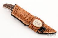 D'Alton Holder was born in Heald, Texas in 1940, was raised in Amarillo and graduated from West Texas State University with degrees in Fine Arts and English Literature. He retired early after 25 years with Diamond Shamrock Corp to become a full time knifemaker in 1988. He began making knives in 1968, joined the Knifemakers Guild in 1973 and was elected to the board in 1976, secretary/treasurer in 1978, President 1982, he served as Vice President 1984. Re-elected to board in 1988 and was elected President again in 1996. Received the Red Watson award in 1982. Named to the NSSF Hall of Fame in 1983. D'Alton is an avid horseman, hunter and fisherman. He prefers to work with natural handle materials and ATS-34. D'Alton has taught over 75 knifemakers, including people like Jim Hardenbrook and Bill Cheatham. Many of his knives are engraved by his wife, Pat Holder. Inducted into the Blade Magazine Cutlery Hall of Fame in 2003. D'Alton passed away in 2022.