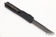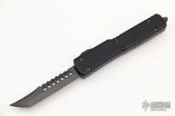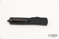 This UTX-70 OTF automatic by Microtech features a shadow finished blade with a standard edge. The handle has a black aluminum frame, black stainless steel tip down clip. Dated 06/2022 s/n 056. Comes with original box and papers. Excellent condition.
