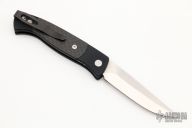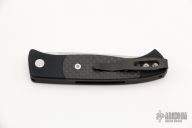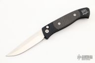 This Small Brend Auto by Pro-Tech features a satin finished blade with false top edge. The handle has a black aluminum frame with carbon fiber inlays and a tip up black stainless steel clip. Includes box and papers. Excellent condition. PR7 #1182.
