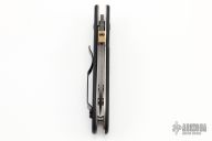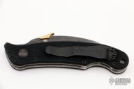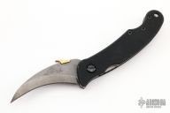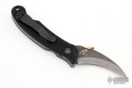 This Elvia by Emerson Knives features a Thunderstorm Finished hawkbill blade with wave brass thumbdisc. The handle has black G-10 scales, titanium liners, black stainless steel tip up clip. Comes with original box and papers. Excellent Condition.